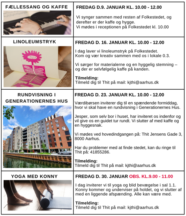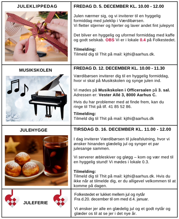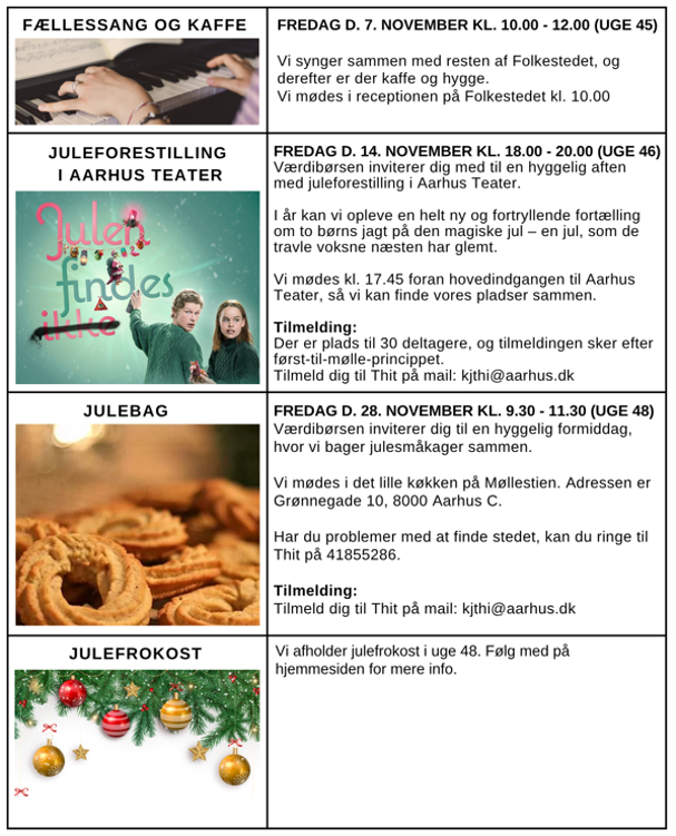 Her kan du se programmet for kommende aktiviteter i Værdibørsen.