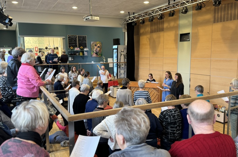 Vi synger sammen med resten af Folkestedet, og derefter er der kaffe og hygge.